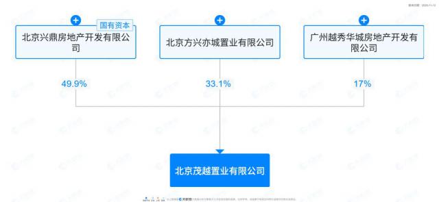 璞樾(北地块)的项目公司叫北京茂越置业有限公司,中建智地虽然持股 49.9%,但操盘方是持股 17% 的越秀——操盘方具有营销话语权。