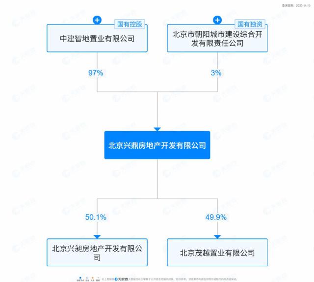 北京兴鼎房地产开发有限公司是中建智地的子公司,持股 97%。兴鼎持有北京兴昶房地产开发有限公司 50.1% 的股份,后者就是紫京宸园的项目公司。